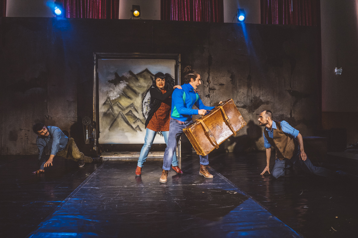 Παίζουν με αλφαβητική σειρά: Λίλα Βλαχοπούλου (Κρίσια), Μαρία Καραμήτρη (Μητέρα/Οδηγός/Βοσκός/Γριά/Ναυτικός), Δημήτρης Καρτόκης (Πατέρας, Άνθρωπος/Ναυτικός/ Γέρος), Άγγελος Νεράντζης (Ναζ), Τίμος Παπαδόπουλος (Λαθρέμπορος/ Στρατιώτης/’Εμπορος/Αδελφός/ Ναυτικός).